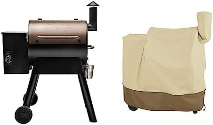 Traeger Grills Pro Series 22 Electric Wood Pellet Grill and Smoker, Bronze, Extra large & Classic Accessories Veranda Water-Resistant 41 Inch Traeger Pellet BBQ Grill with Exhaust Arm Cover Patio, Lawn & Garden