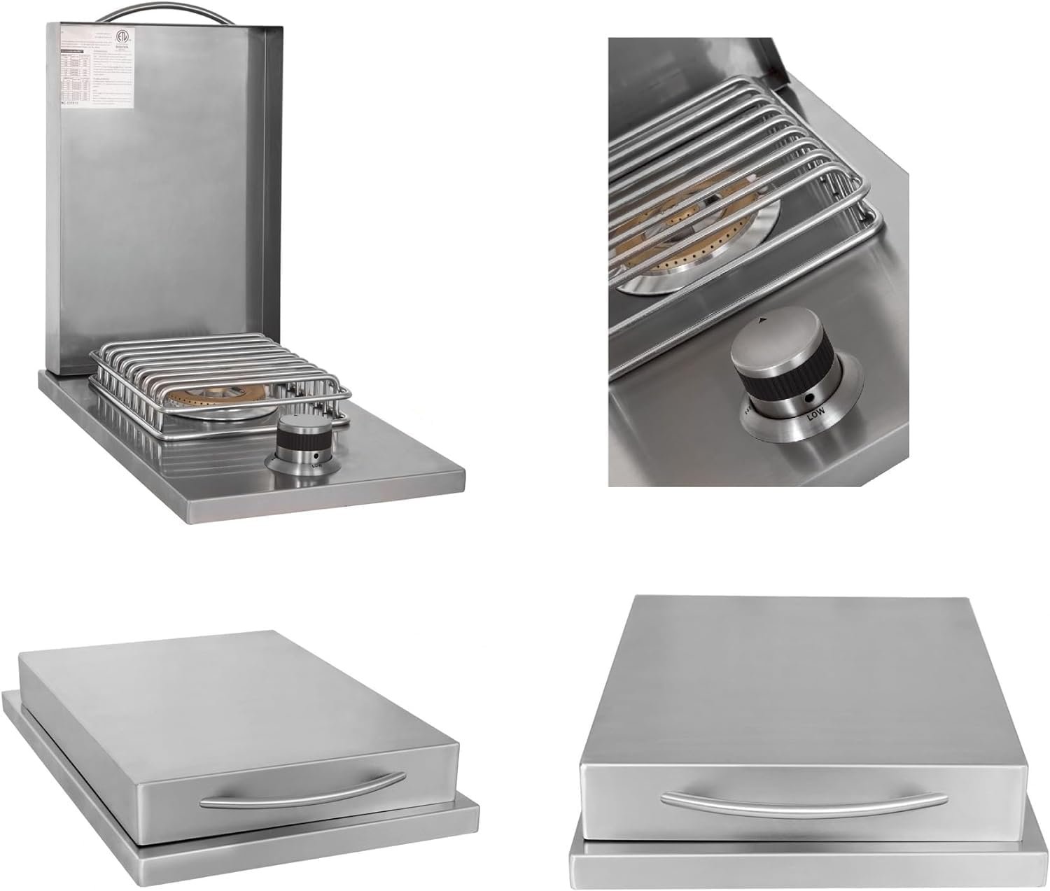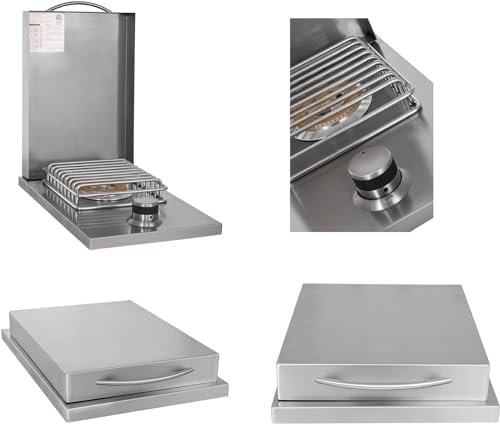 Durable Construction and Accessories: The grill features a double-lined 304 stainless steel hood to prevent discoloration, while the package includes a rotisserie kit, grill cover, and fridge trim for a seamless outdoor kitchen setup.