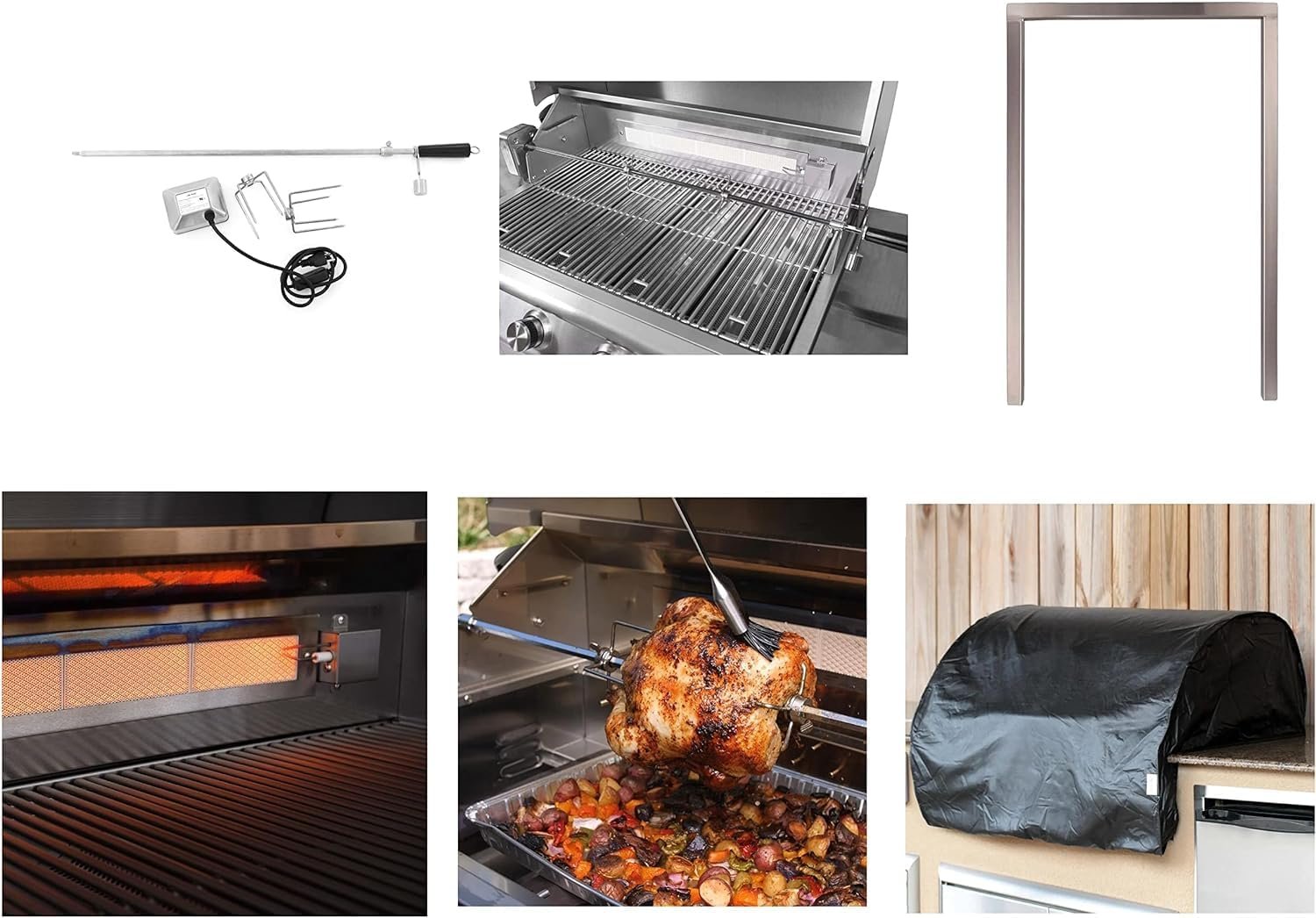 Grill Cover, Rotisserie Kit (includes motor, spit rod, 2 forks and counterbalance), Fridge Trim |