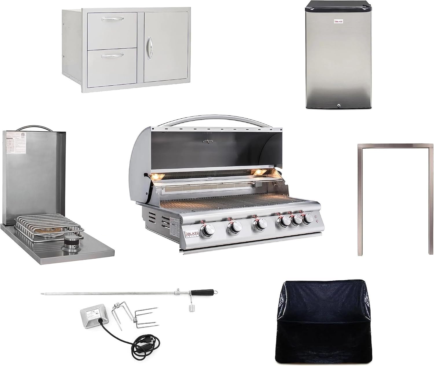 BLAZE BBQ Outdoor Package of 40” LTE Built-in Gas Grill, Dop-In Single Side Burner, 32” Door & Two Drawers Combo, Compact Refrigerator and Accessories (Grill Cover, Fridge Trim and Rotisserie Kit) Patio, Lawn & Garden