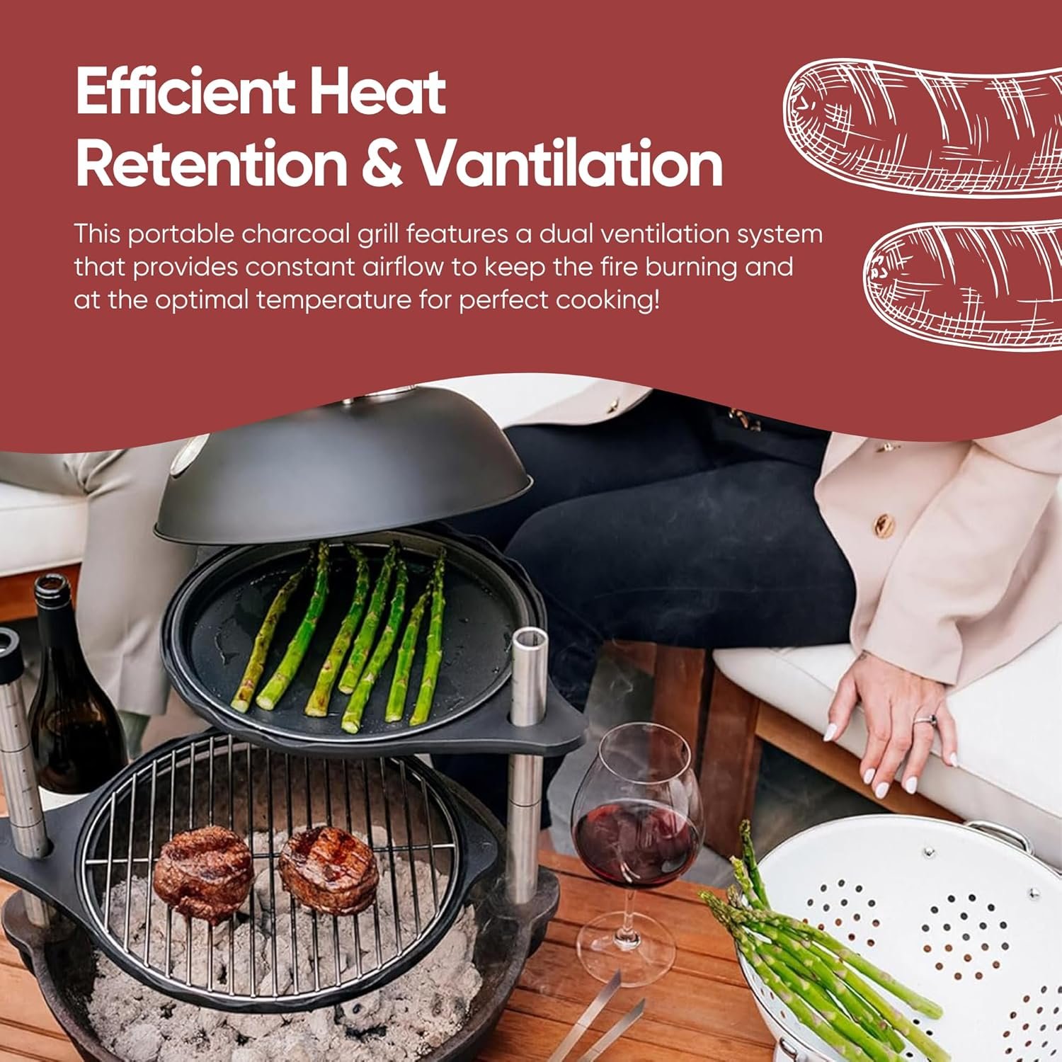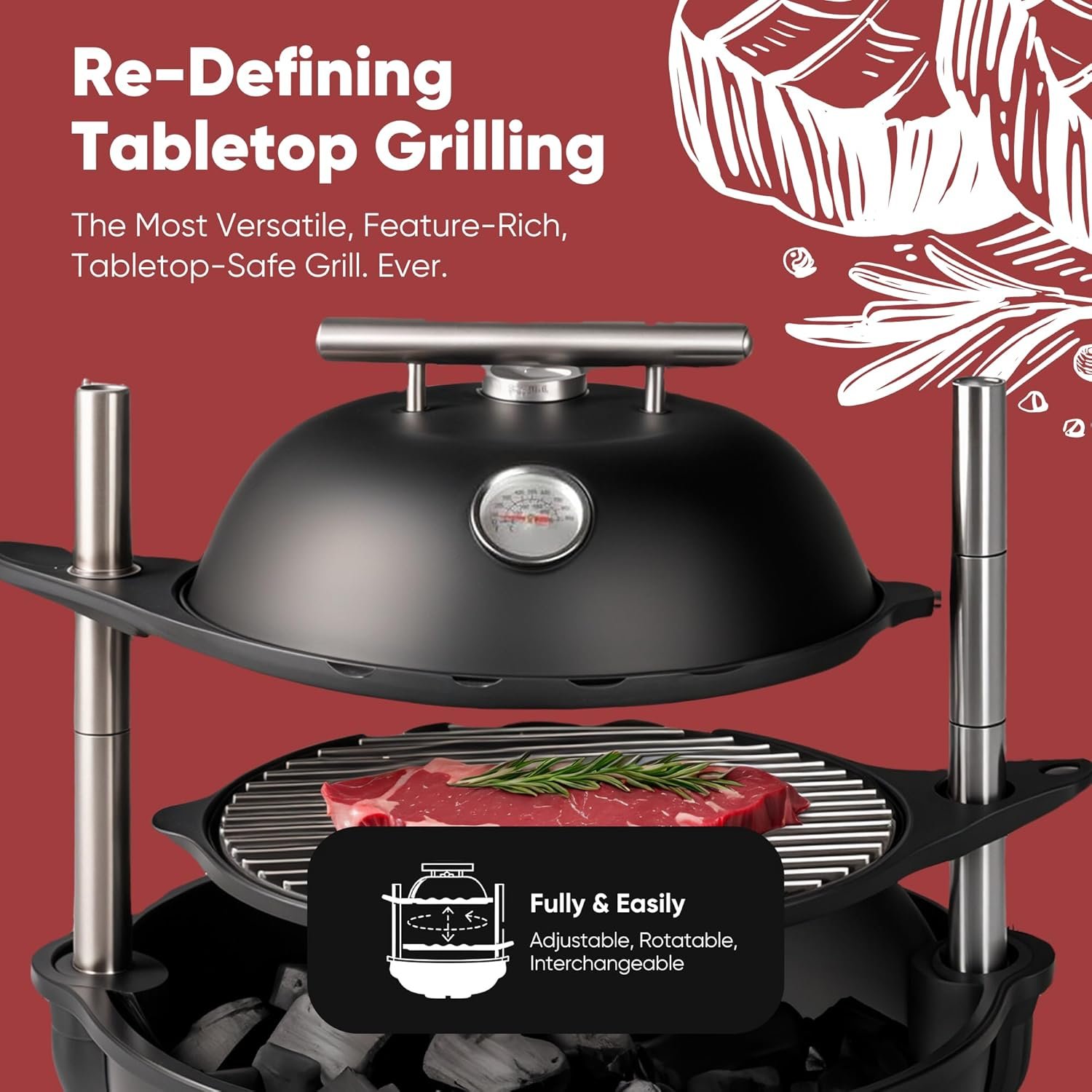 Bola Grill Master | Completely Adjustable & Rotatable Tabletop-Safe Charcoal BBQ Grill (Charcoal Black) Patio, Lawn & Garden