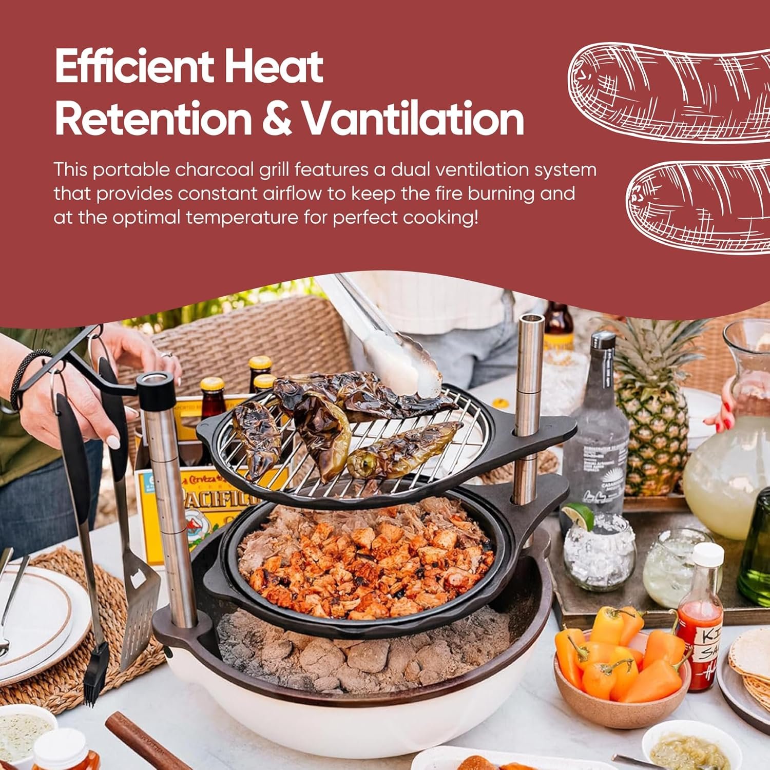 Portable: Portable Grill Charcoal. Size ensures easy transport for this charcoal grill and the perfect fit on nearly any table top.