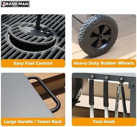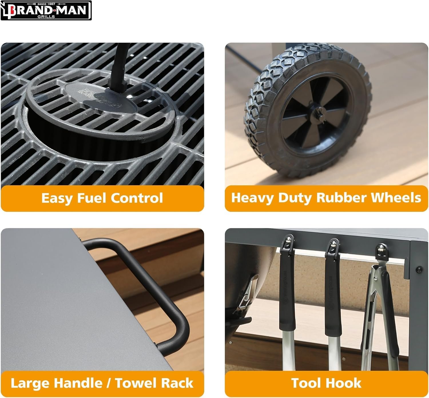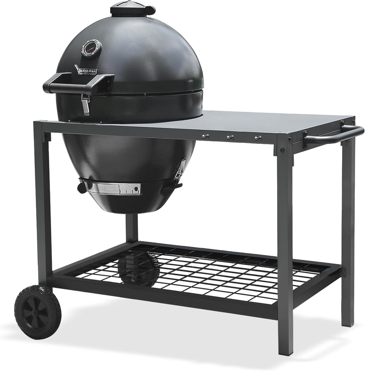 Brand-Man RODEO Steel Kamado Charcoal Grill and Smoker with 22in Cast Iron Grates and Large Prep Table Cart Perfect for Outdoor Cooking Patio, Lawn & Garden