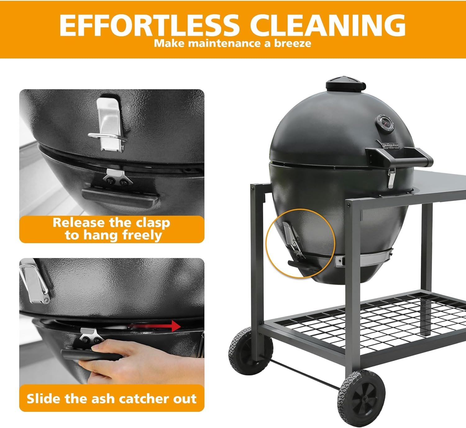 EASY TO CLEAN: The enamel-coated lid is designed for durability and effortless cleaning, simplifying daily maintenance and post-grilling one-step cleanup with the Ash Removal Tray