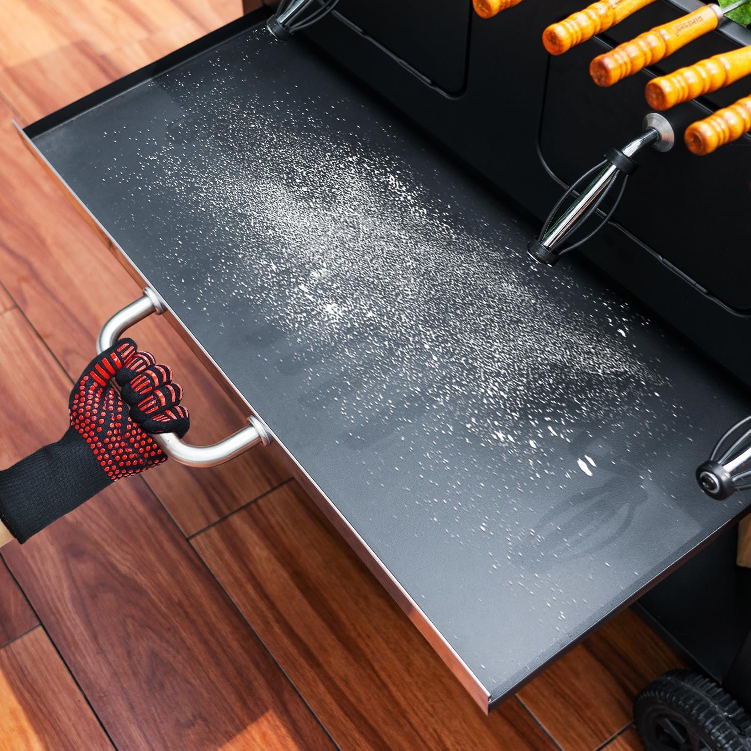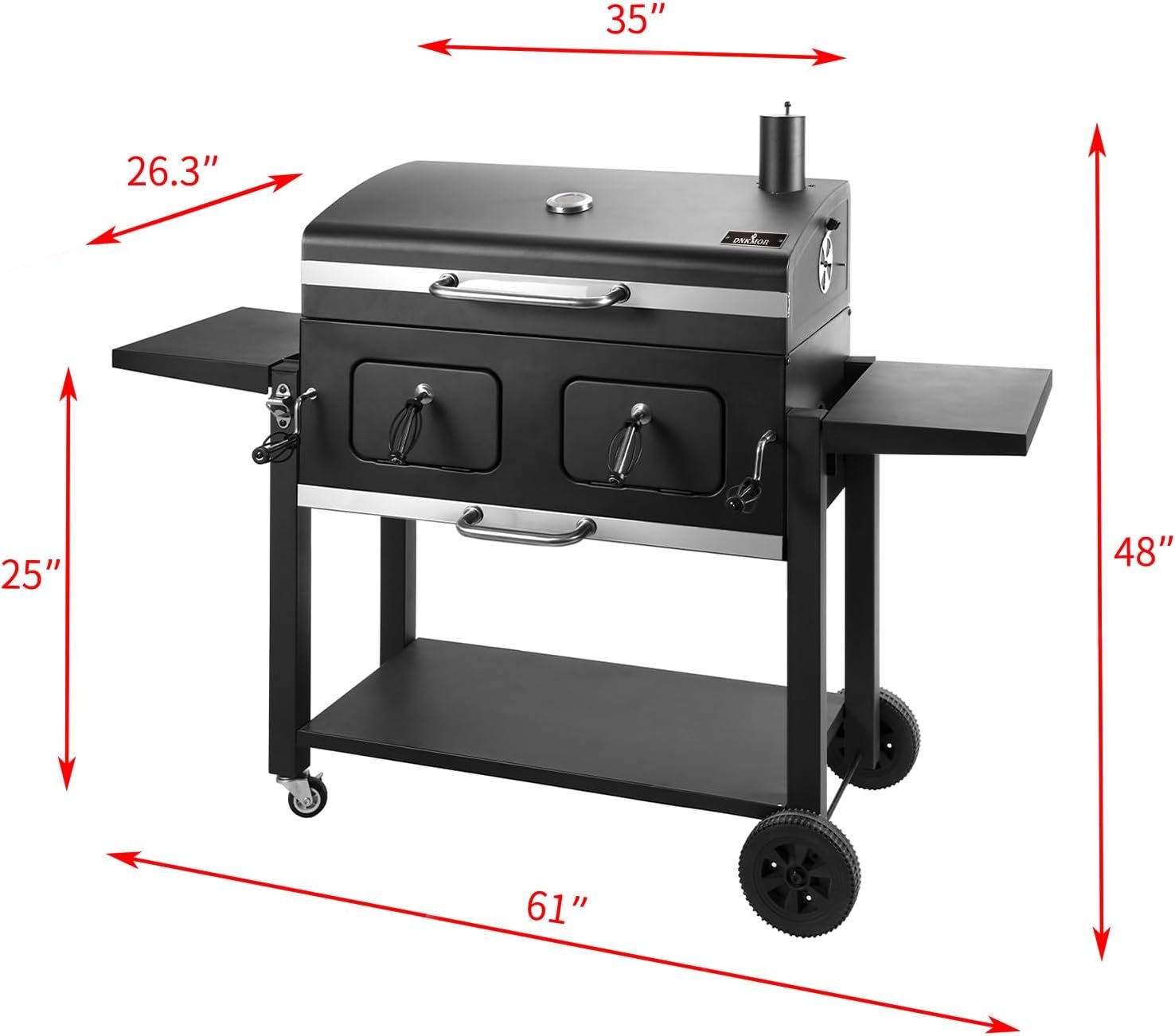 • 【Safe, Easy Charcoal Access and High Quality】The outdoor charcoal smoker grill is made of high quality steel. High temperature Power-coated surface. And with 2 Charcoal door individual at the front of the grill. while cooking no need have to move the food or remove the cooking grates away. Just Open the door and add the charcoal inside with 2 cooling handles.