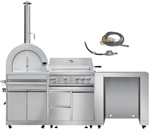 CT Copper Tailor Modular Outdoor Kitchen BBQ Gas Grill Island 4 Burners, with Wood Fire Pizza Oven MK07, Fridge Cabinet,Stainless Steel(With Natural Gas Kit) Patio, Lawn & Garden