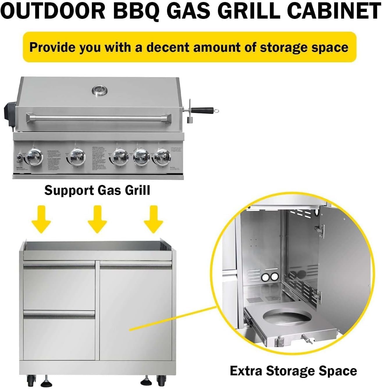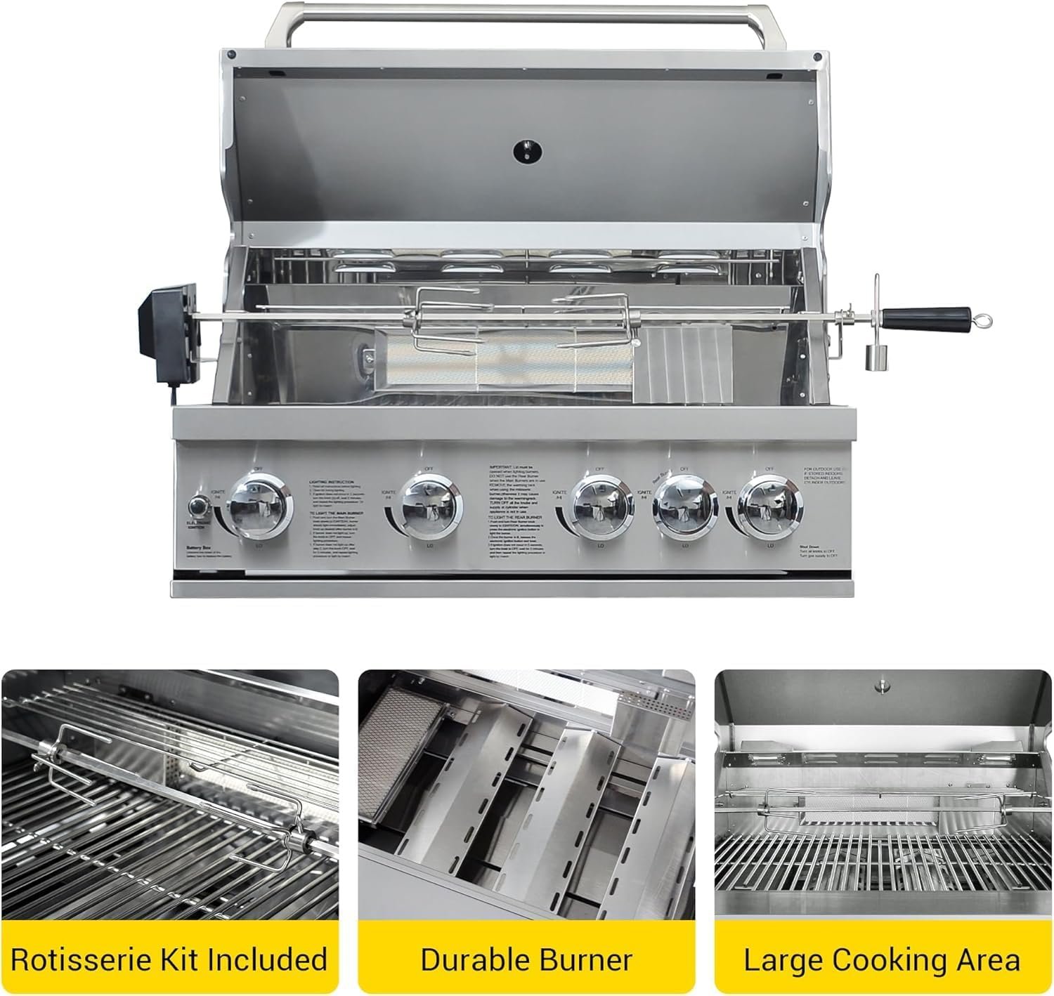 Durable Construction: Constructed from premium 304 stainless steel, our outdoor kitchen grill island is designed to withstand outdoor elements for lasting performance.