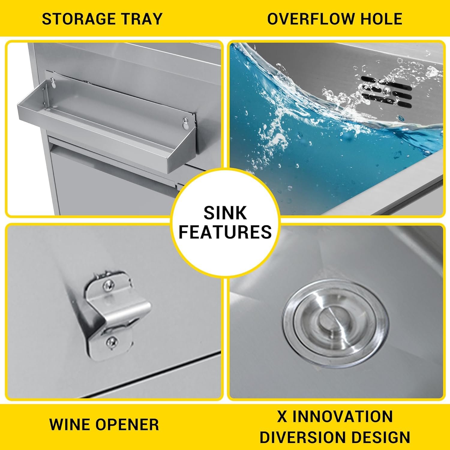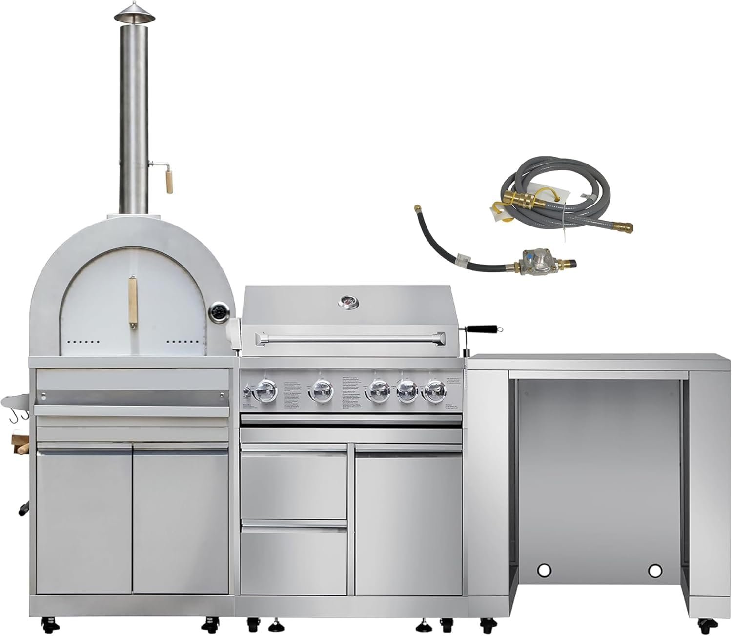 Modular Design: The modular, freestanding nature of the 4-piece outdoor kitchen package makes installation a breeze and offers maximum flexibility. With interlocking attachments, you can combine and arrange them to create an ideal BBQ grill island.