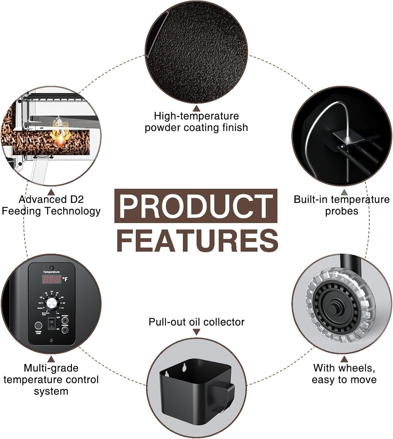 PRECISION TEMPERATURE CONTROL: Features PID intelligent temperature control technology to maintains a ±15°F temperature control. The temperature range is 180-425°F. (Avoid frequent opening the lid, it will affects furnace temp and cooking effect.)