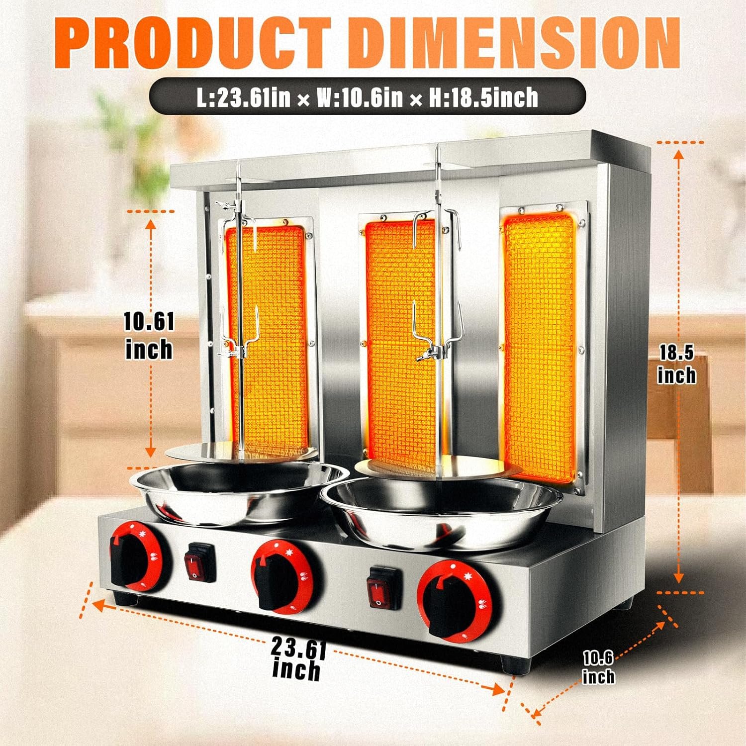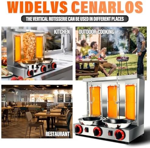 Li Zhen Shawarma Machine Vertical Rotisserie Gyro Machine Commercial Turkish Kebab and Grilled Chicken Machine with 3 Burner,Silver Industrial & Scientific