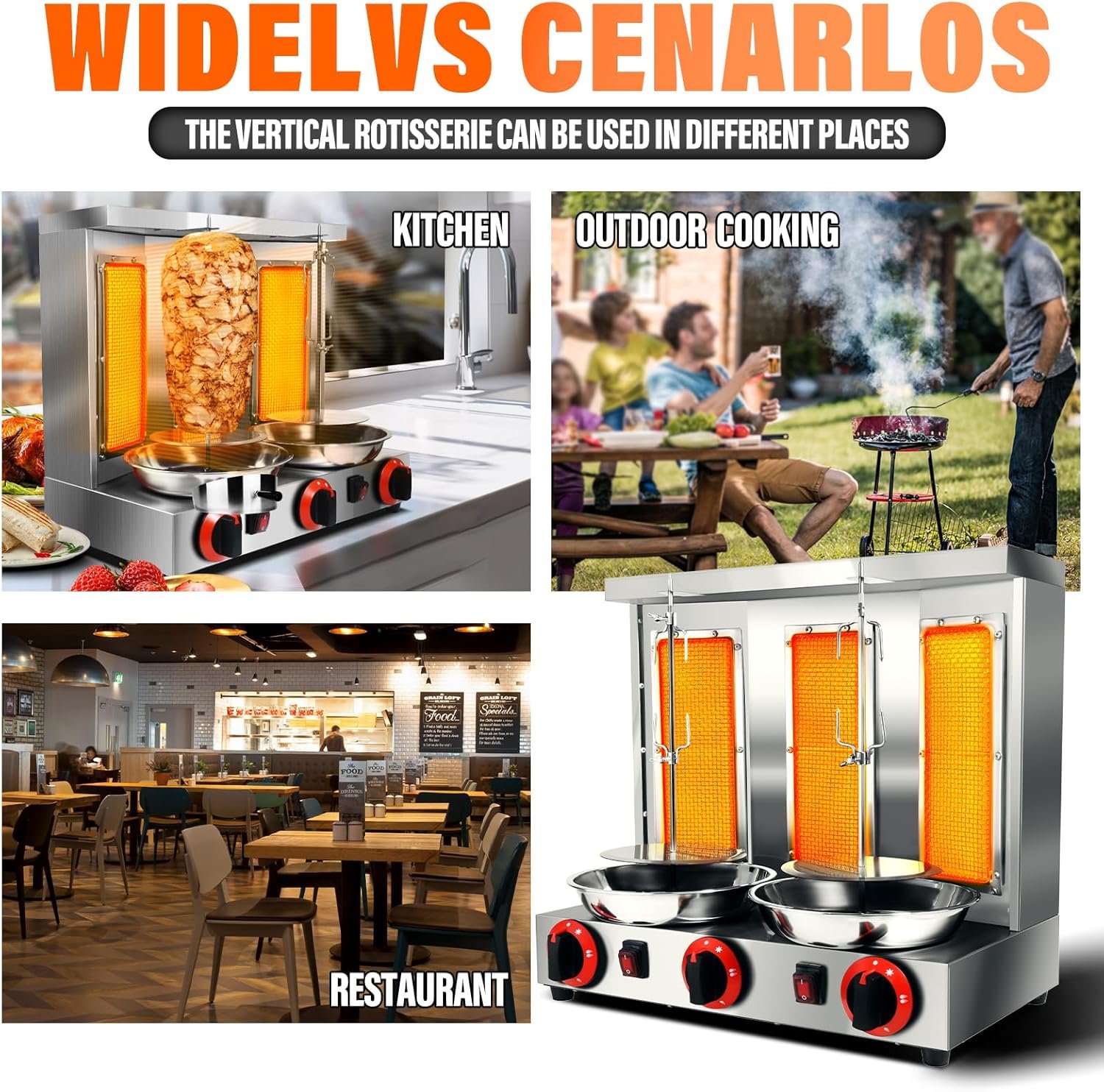 This shawarma machine comes with 3 burners to cook food quickly and is made of high quality food grade stainless steel material