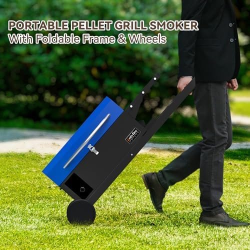 1 review for Onlyfire BBQ Wood Pellet Grill Smoker with Foldable Cart, Meat Probe, 2 Tiers Cooking Area, Portable Tabletop Grilling Stove for Outdoor Kitchen Cooking Smoke and Roast, RV Camping, Blue GS342 Patio, Lawn & Garden